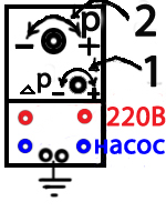 * Обертаємо гайку 2 (верхня) за годинниковою стрілкою, збільшуючи тиск відключення насоса (проти годинникової для зменшення)